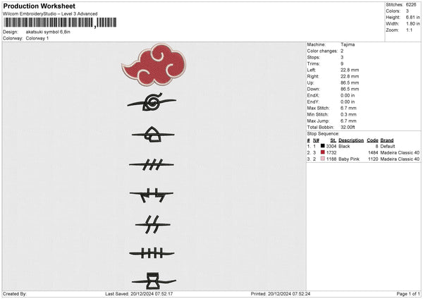 Akatsuki Symbol Embroidery File 6 size