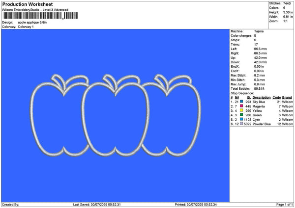Apple Applique Embroidery File 6 sizes