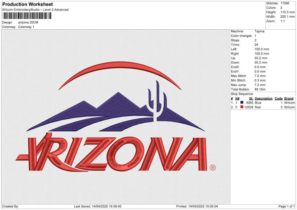 Arizona Embroidery File 6 size