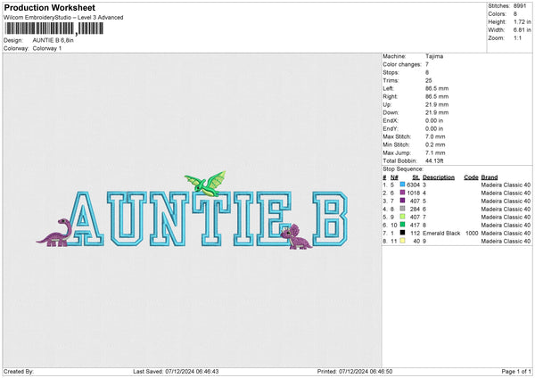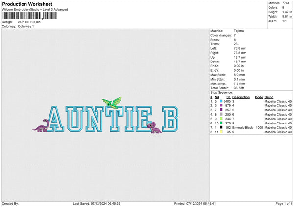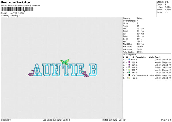 AUNTIE B Embroidery File 6 size