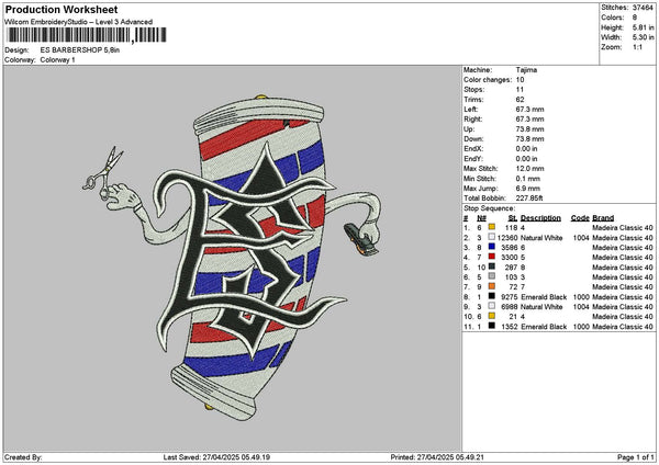 Barbershop 2704 Embroidery File 6 sizes