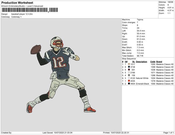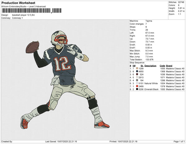 Baseball player 12 Embroidery File 6 size