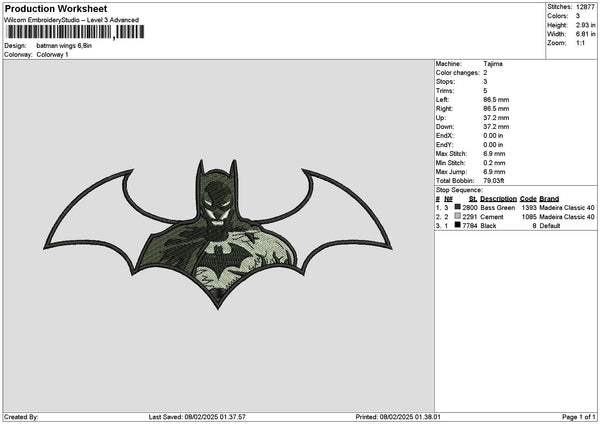Batmanwings Embroidery File 6 sizes