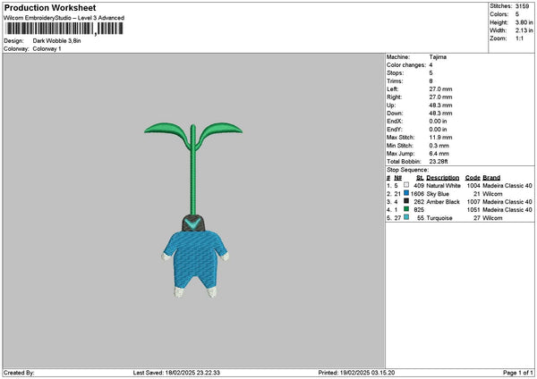 Blue Chibi Embroidery File 6 sizes