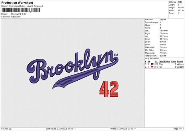 Brooklyn42 Embroidery File 6 size