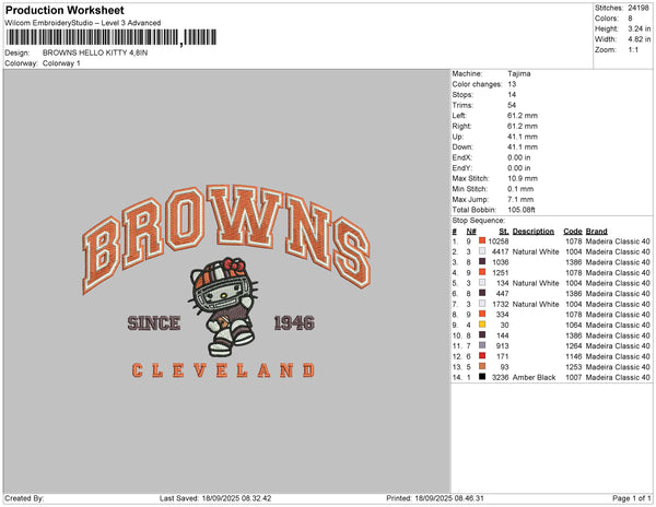 BROWNS HELLO KITTY Embroidery File 6 sizes
