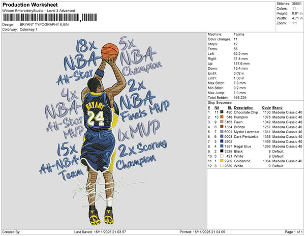 BRYANT TYPOGRAPHY Embroidery File 6 size