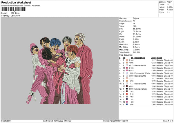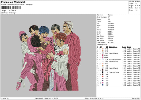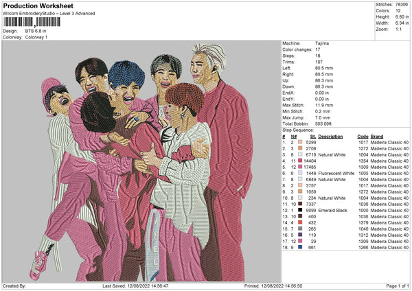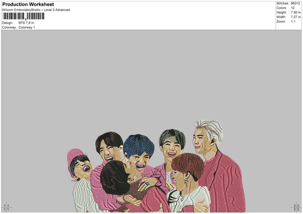 BTS Realistic Embroidery File 4 sizes