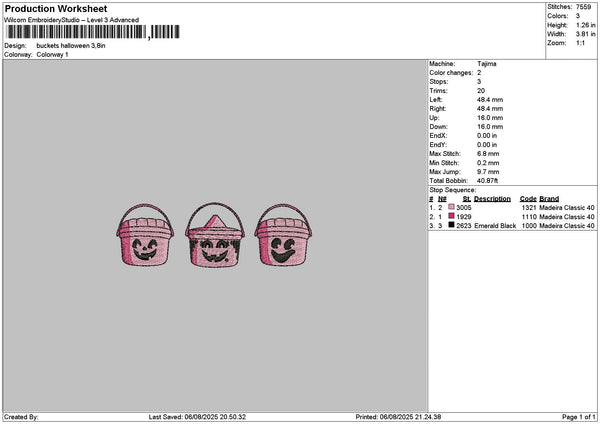Bucketshalloween Embroidery File 6 sizes