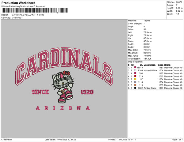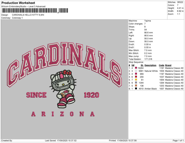 CARDINALS HELLO KITTY Embroidery File 6 size