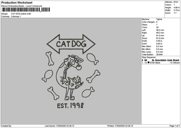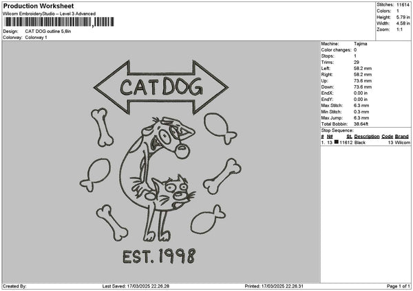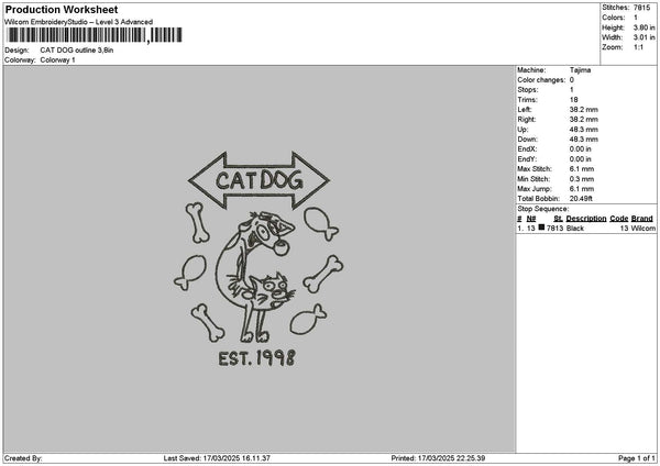 Cat Dog Outline 1703 Embroidery File 6 sizes