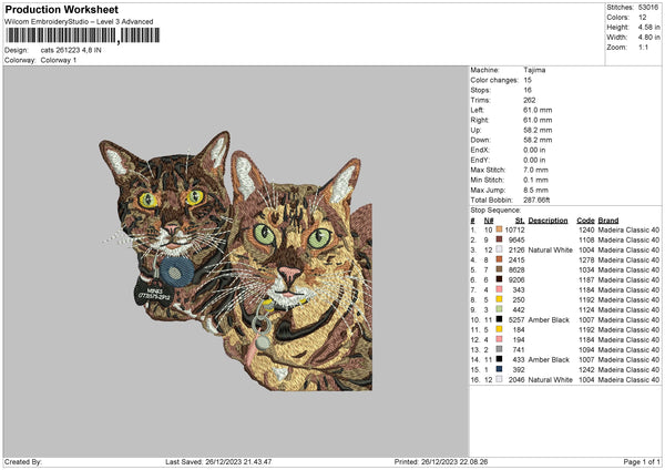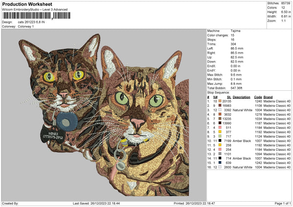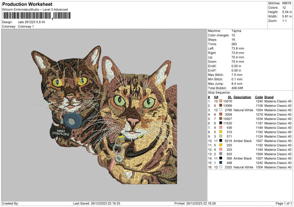 Cats 2612 Embroidery File 6 sizes