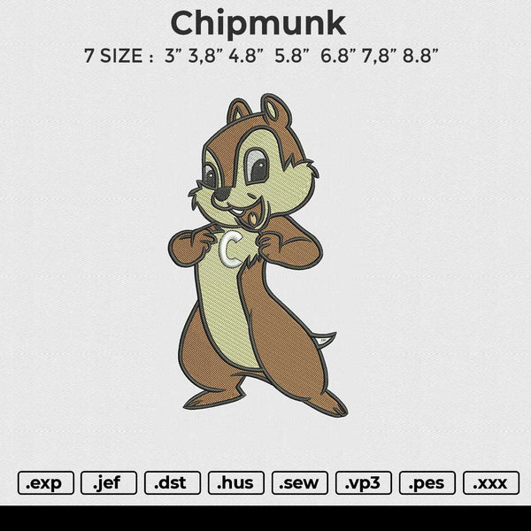 Chipmunk Embroidery File 6 size