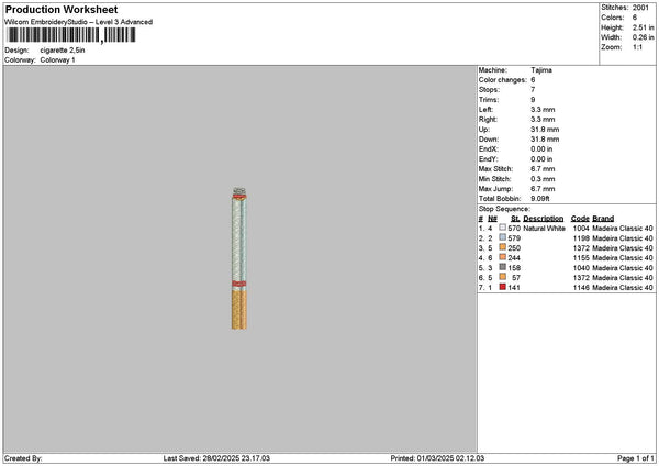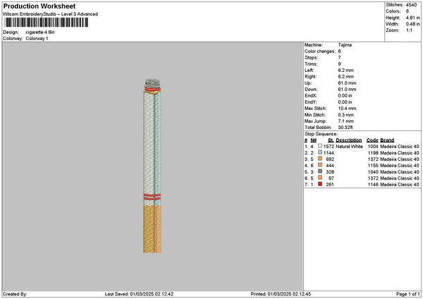 Cigarette Embroidery File 6 sizes