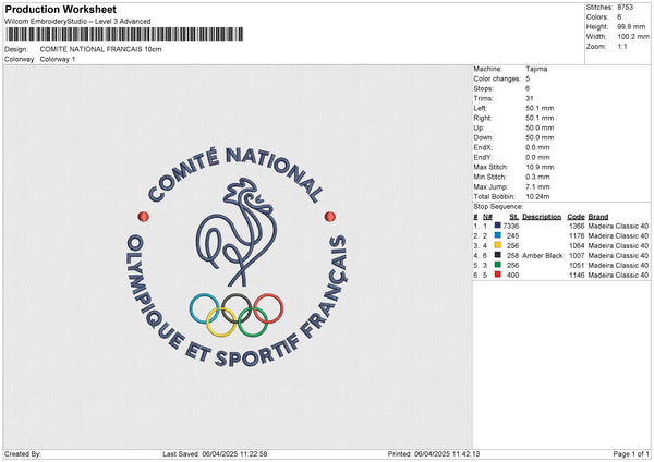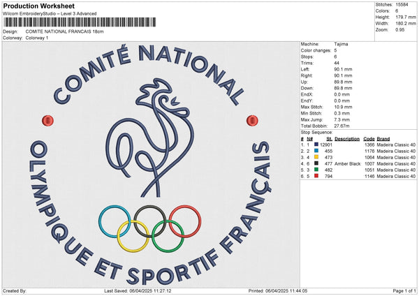 COMITE NATIONAL FRANCAIS Embroidery File 6 size