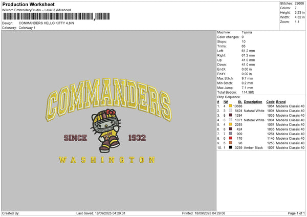COMMANDERS HELLO KITTY Embroidery File 6 sizes