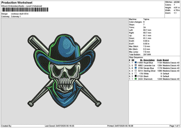 Cowboys Skull 2407 Embroidery File 6 sizes