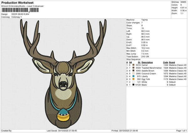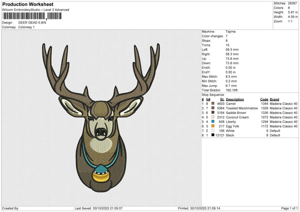 DEER GEAD Embroidery File 6 sizes
