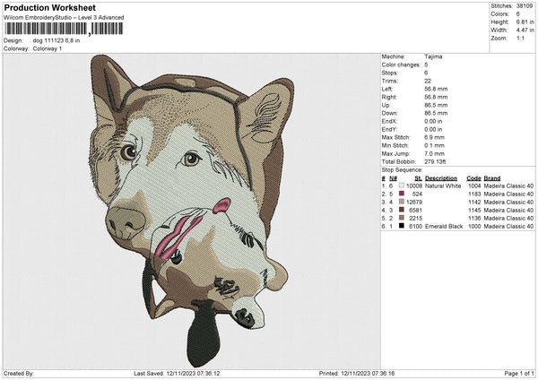 Dog 111123 Embroidery File 6 size