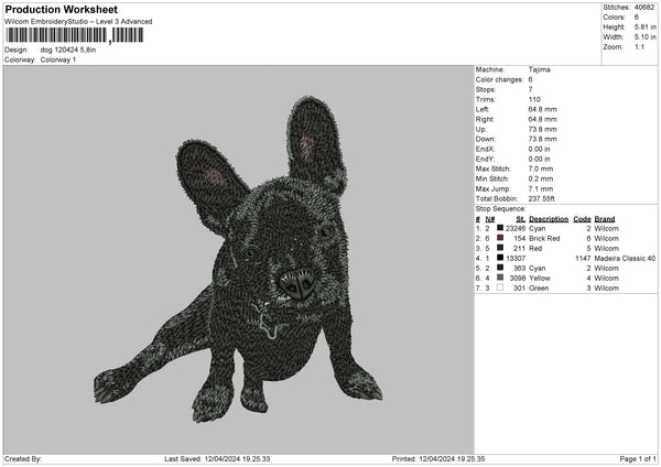 Dog 1204 Embroidery File 6 sizes