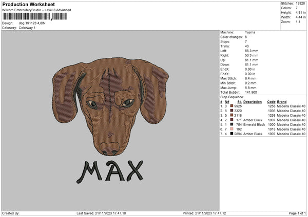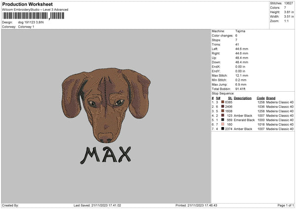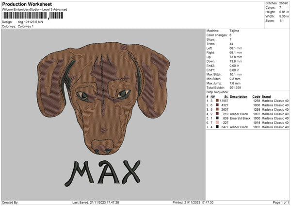 Dog 1911 Embroidery File 6 sizes