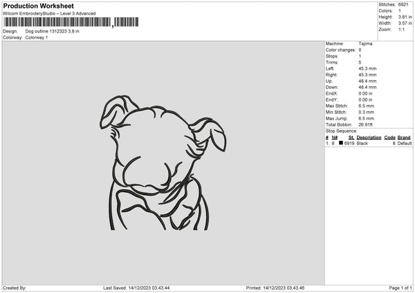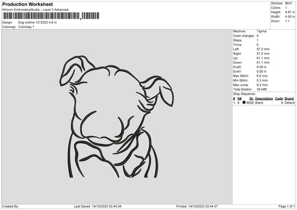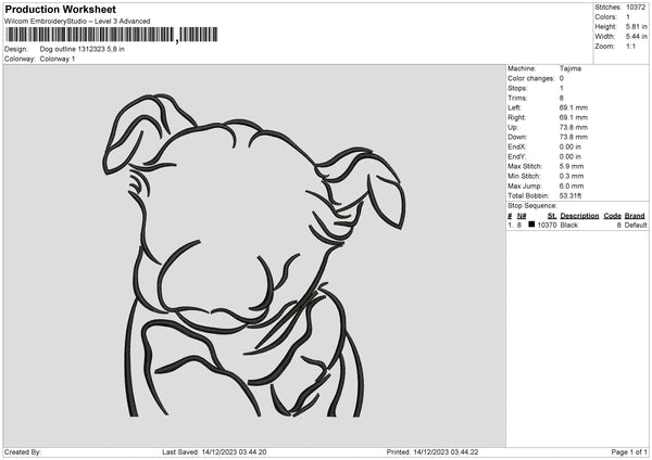 Dog Outline 1312 Embroidery File 6 sizes