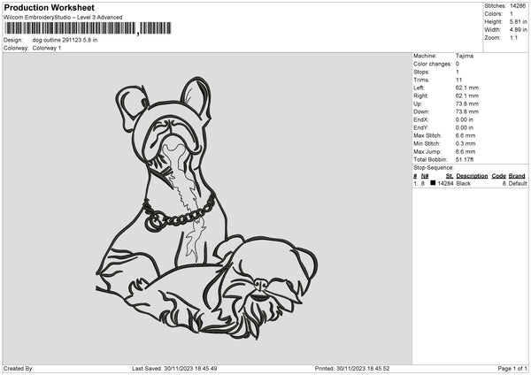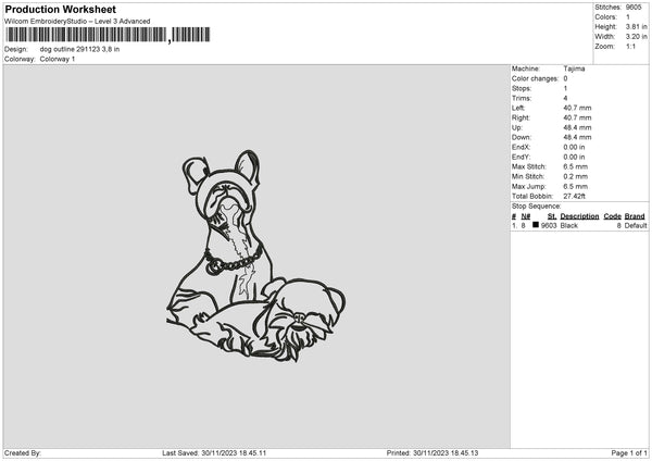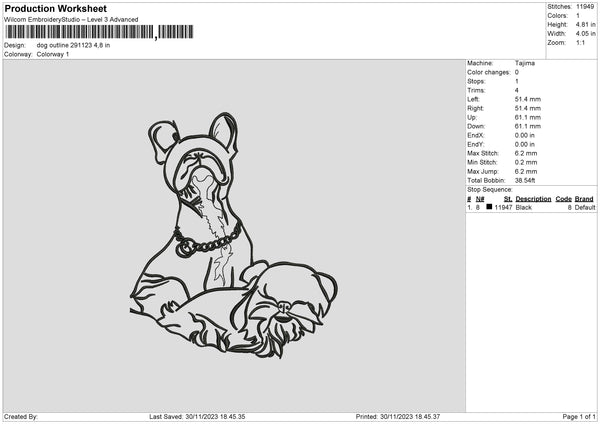 Dog Outline 2911 Embroidery File 6 sizes