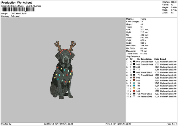 Dog Xmas 1011 Embroidery File 6 sizes
