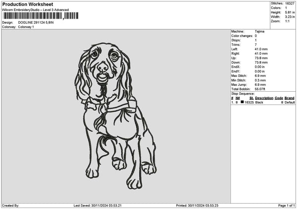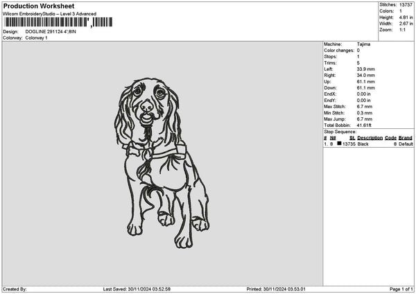 Dogline 2911 Embroidery File 6 sizes