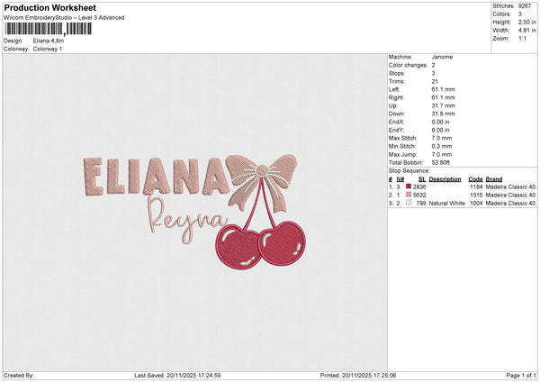 Eliana Embroidery File 6 size