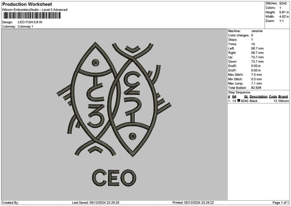 Fish Line 01 Embroidery File 6 sizes