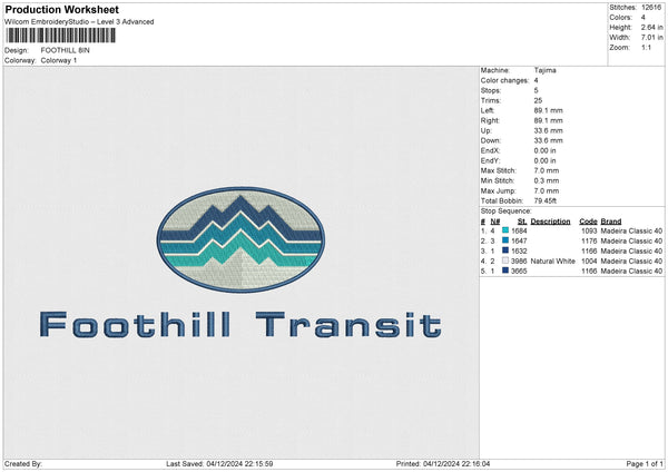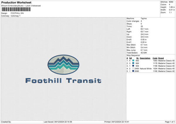 FOOTHILL Embroidery File 6 size
