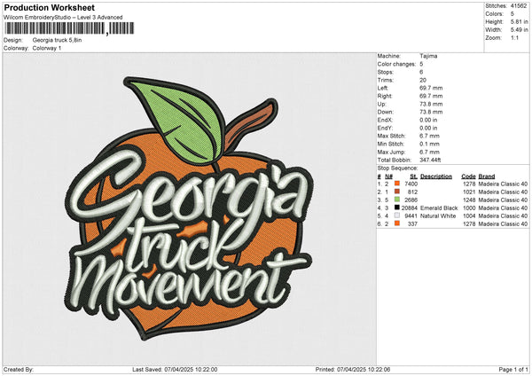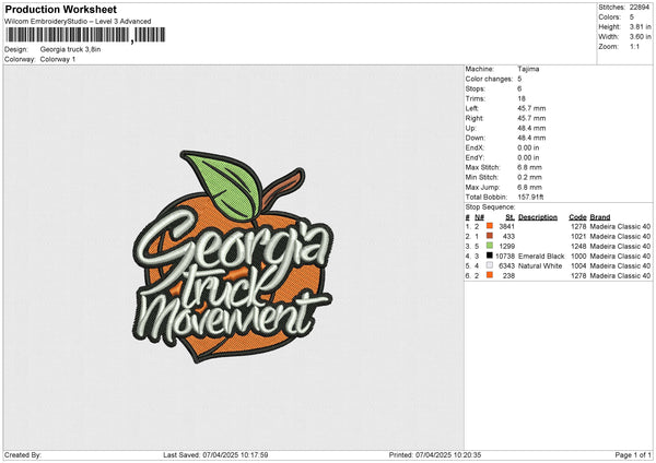 Georgia truck Embroidery File 6 size
