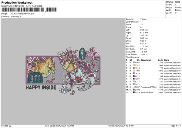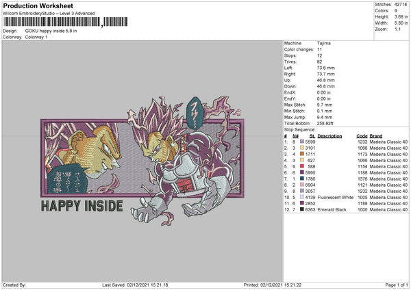 Goku Happy Inside Embroidery File 4 size