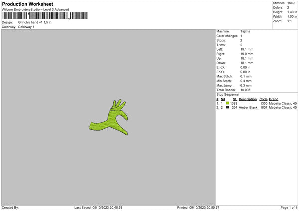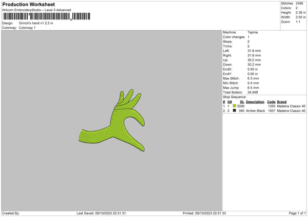 Grinchs Hand V1 Embroidery File 6 sizes