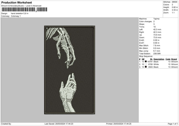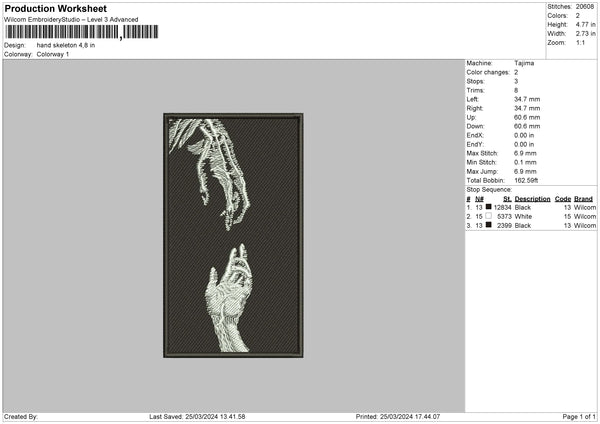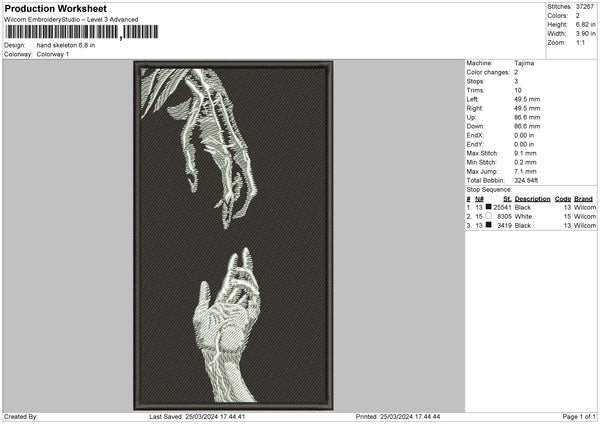 Hand Skelton Embroidery File 6 sizes