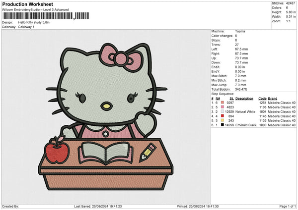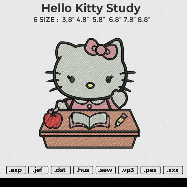 Hello Kitty Study Embroidery File 6 size