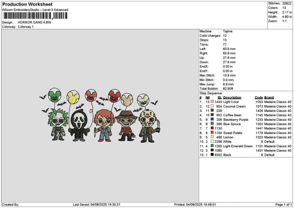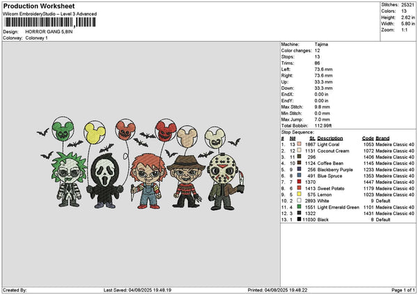 Horror Gang 0408 Embroidery File 6 sizes