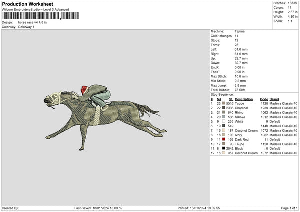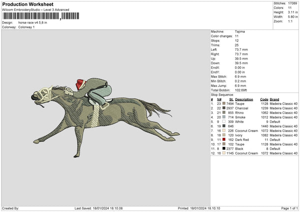 Horse Race V4 Embroidery File 6 sizes