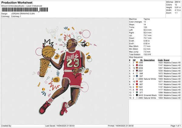 JORDAN DRAWING 15425 Embroidery File 6 size