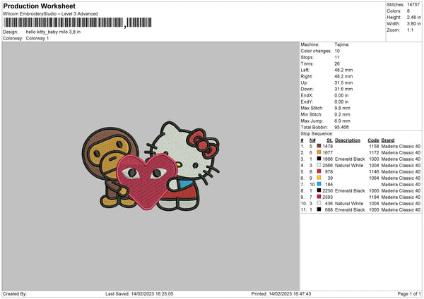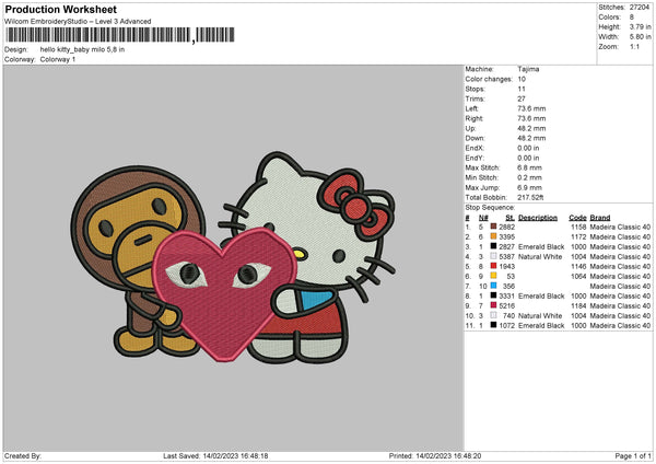 Kitty Milo Bby Embroidery File 6 sizes