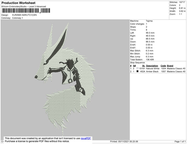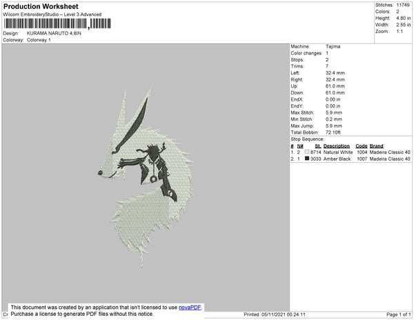 Kurama Naruto 02 Bw Embroidery File 4 size