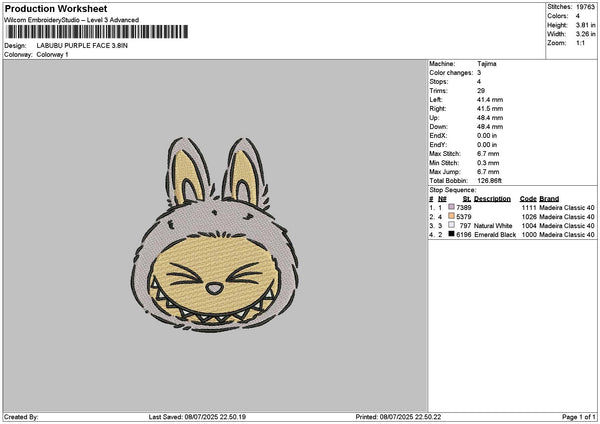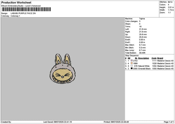 Labupurple Face Embroidery File 6 sizes