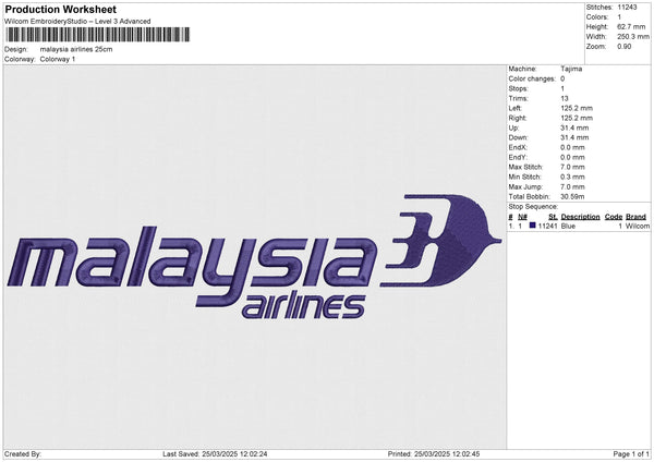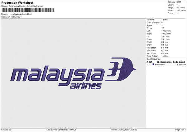 Malaysia Airlines Embroidery File 6 size