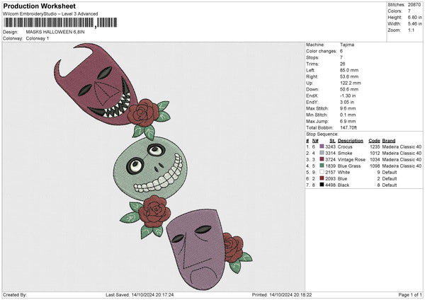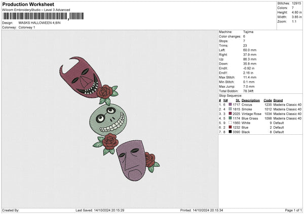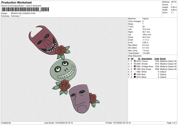 MASKS HALLOWEEN Embroidery File 6 size