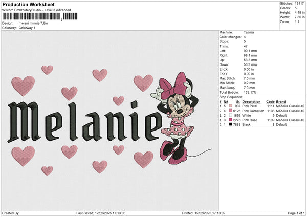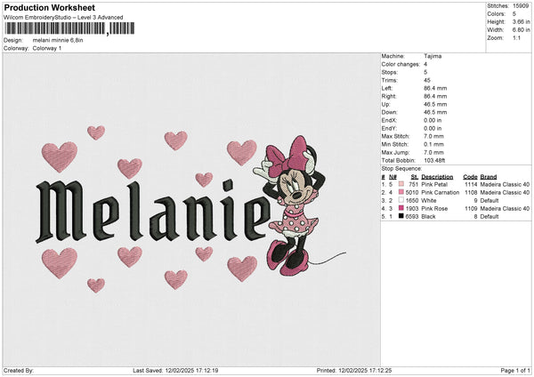 Melani Minnie Embroidery File 6 size