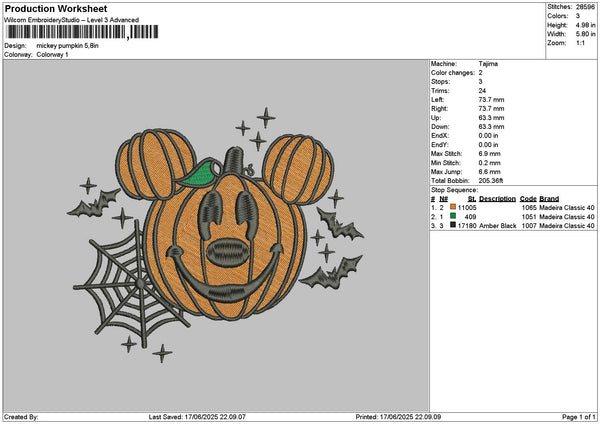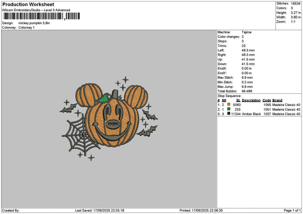 Mickeypumpkin 1706 Embroidery File 6 sizes