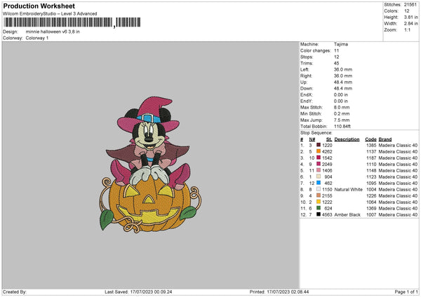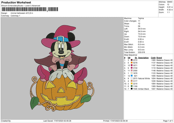 Minnie Halloween V6 Embroidery File 6 sizes