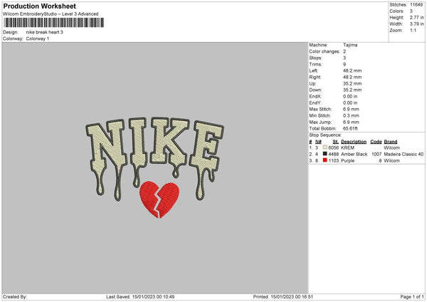 Nike Break Heart Embroidery File 6 sizes