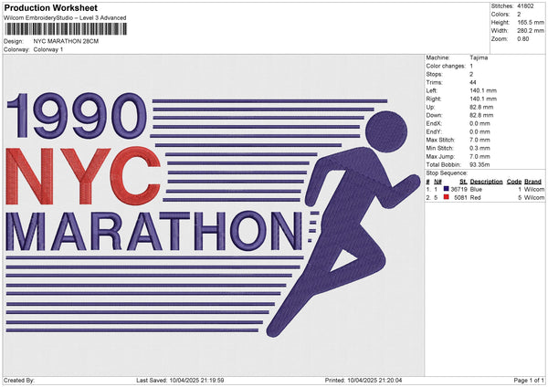 NYC MARATHON Embroidery File 6 size